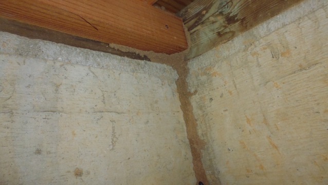 イエシロアリは自分で水分を運び、途中で巣をつくりながら加害していくため、比較的地面から離れた高さにまで被害が及びます。